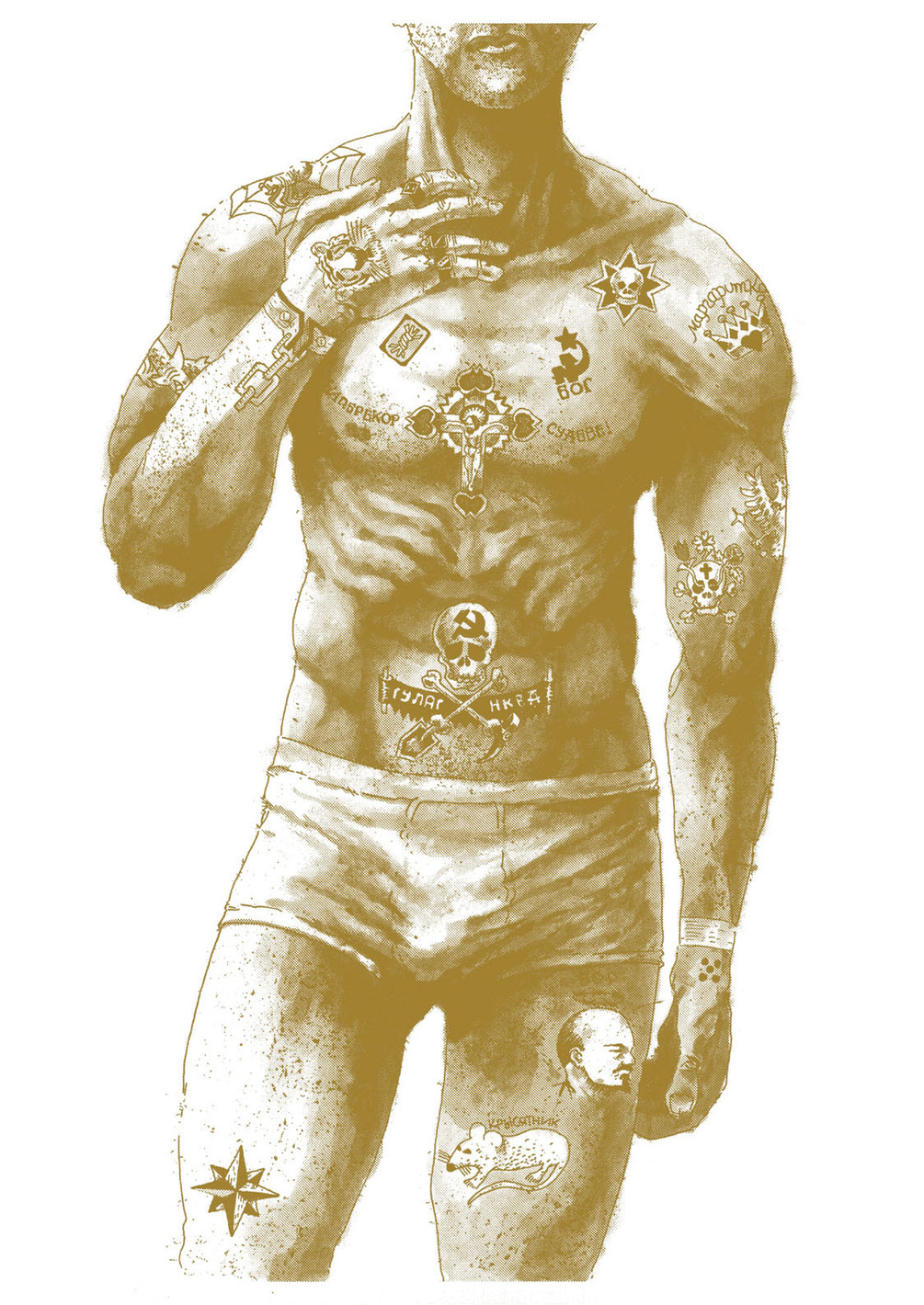 Gold Russian Criminal Tattoo - Risoprint