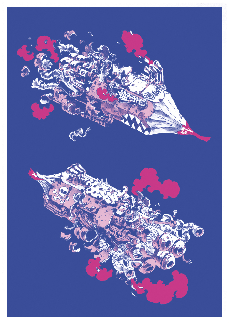 There are two versions of the risoprint: Yellow and Blue. Both are in A3-size (29,7x42cm).