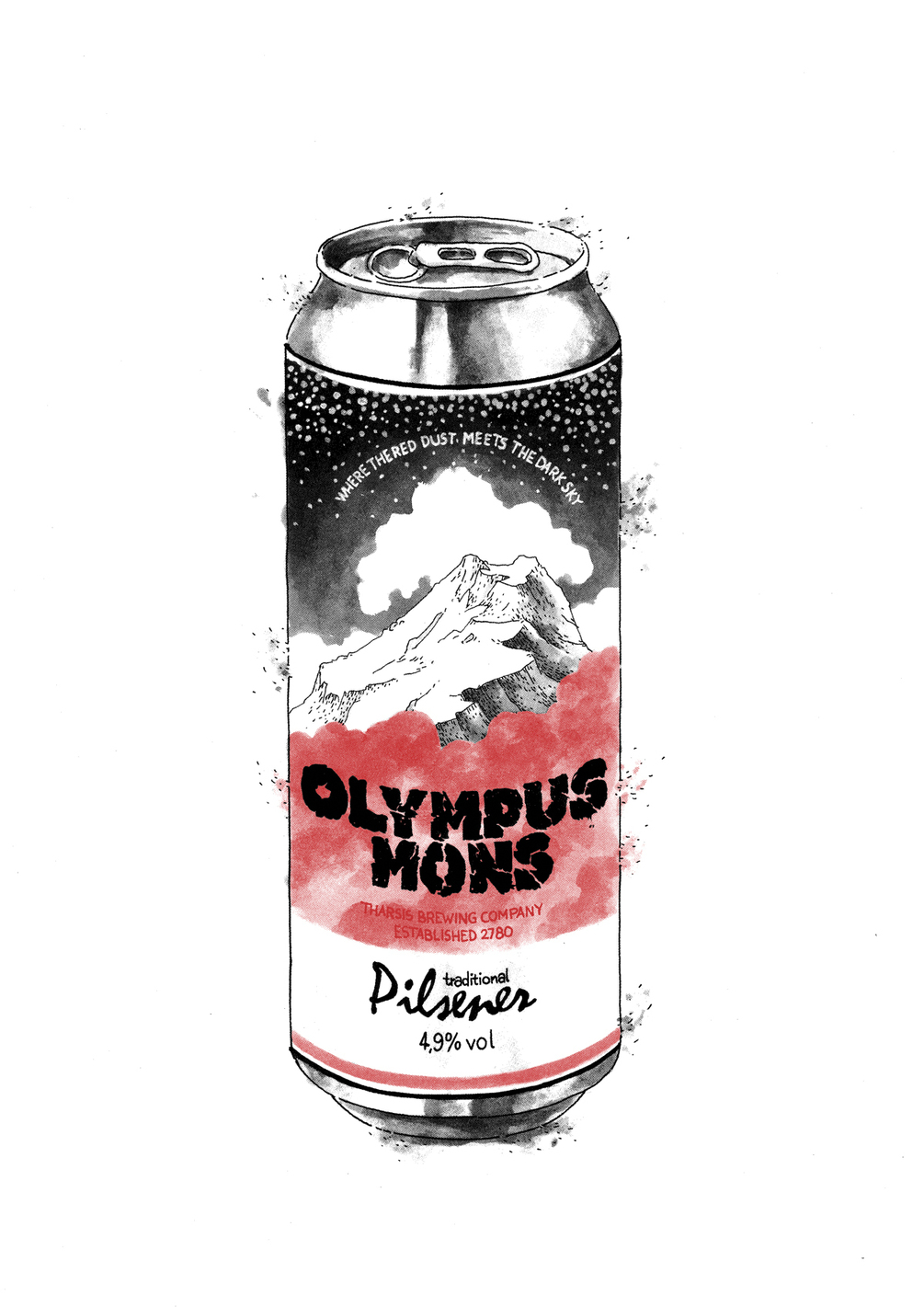 Olympus Mons and Red Planet - the most sold beer brands of Mars City.